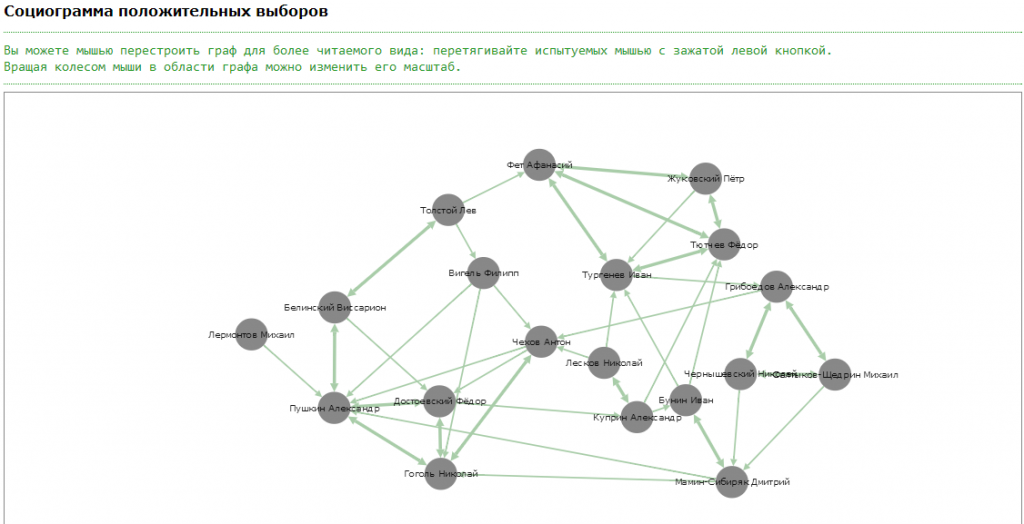 C версии 0.8 сервиса Социоматрица.Онлайн появилась возможность стоить и печатать графы положительных и отрицательных выборов .
